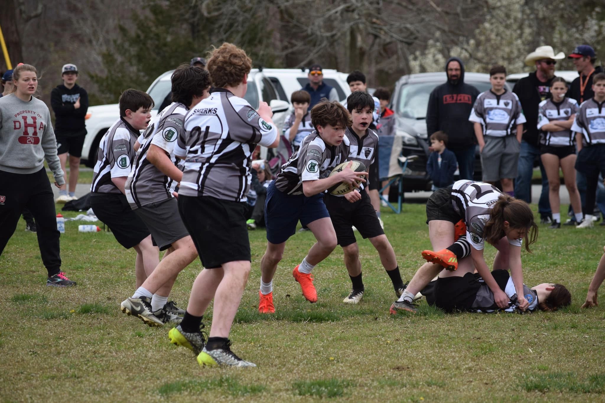 The South Shore Sharks offers coed flag rugby for grades K-6 and tackle rugby for grades 7-12.